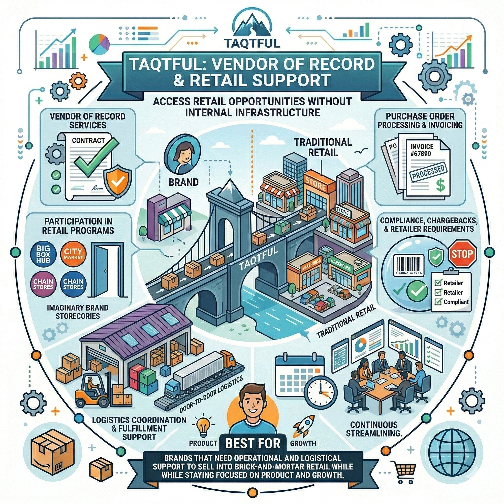 At TAQTFUL, we have formulated the love and passion that it takes to reach the biggest of goals. We wear our brands on our sleeves and don't sleep until we win. We build loyal networks on the backs of relationships and we achieve growth through methodical merchandising online and in store. We build interwoven funnels on Amazon to ensure top ranking ASINs and we deliver in store programs that expand market share and diversification.